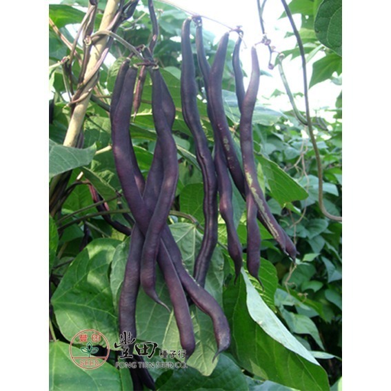 ~特性 蔓性,豆莢紫色,莢型扁平寬大,無筋,莢柔嫩無纖維,口感好,顏色漂亮。