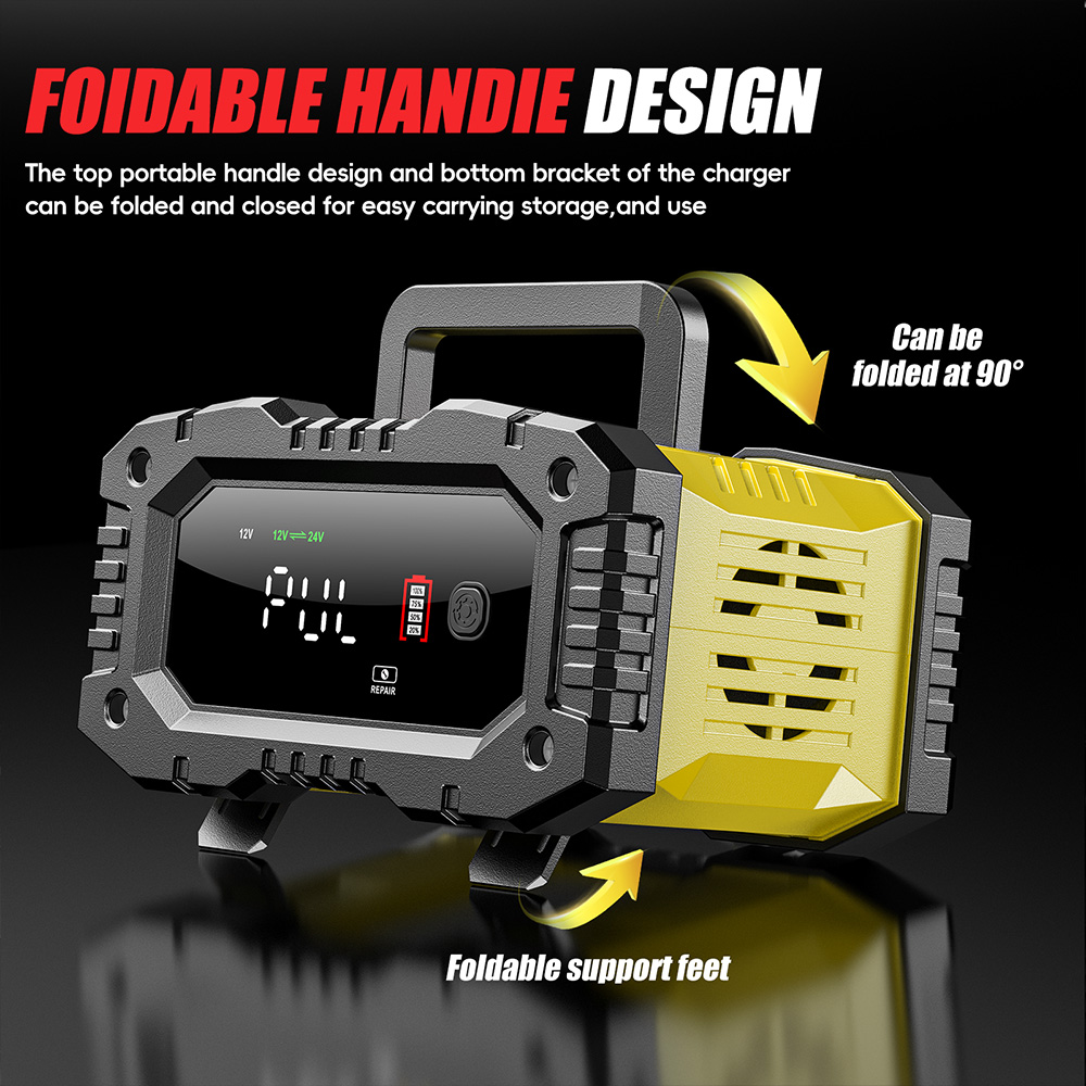 福克斯 12V10A /24V5A 汽車電池充電器,全彩LCD 大螢幕 檢測 充電