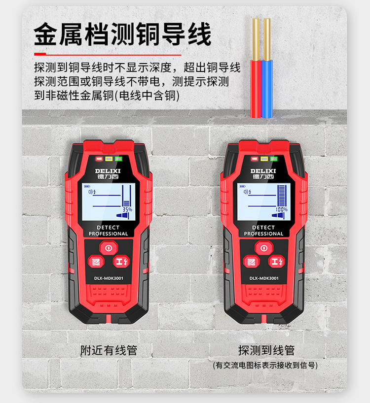 (1)牆體探測:木材、金屬、電線電纜、鋼骨等(PVC水管不在可測範圍)