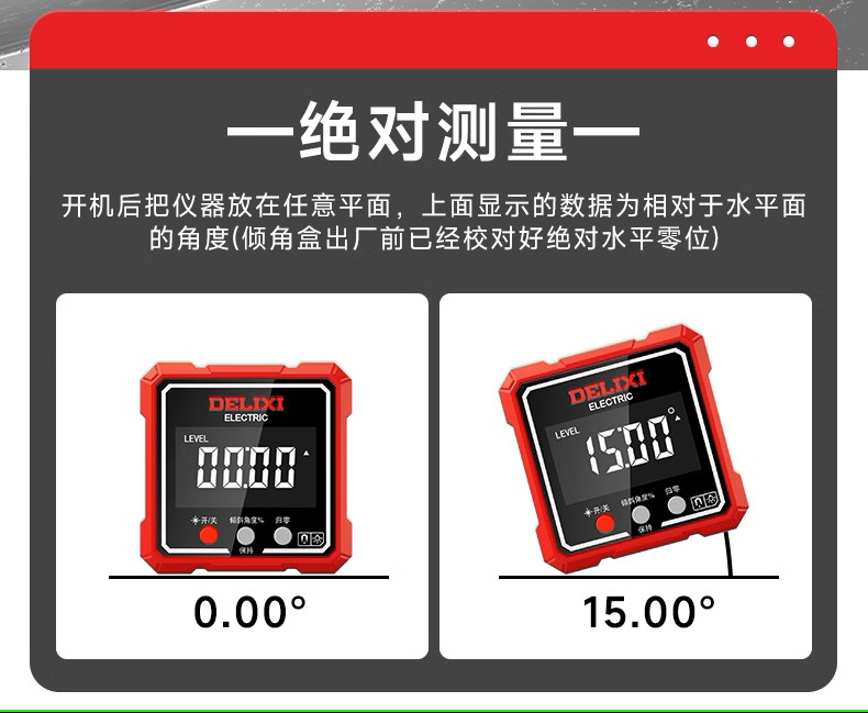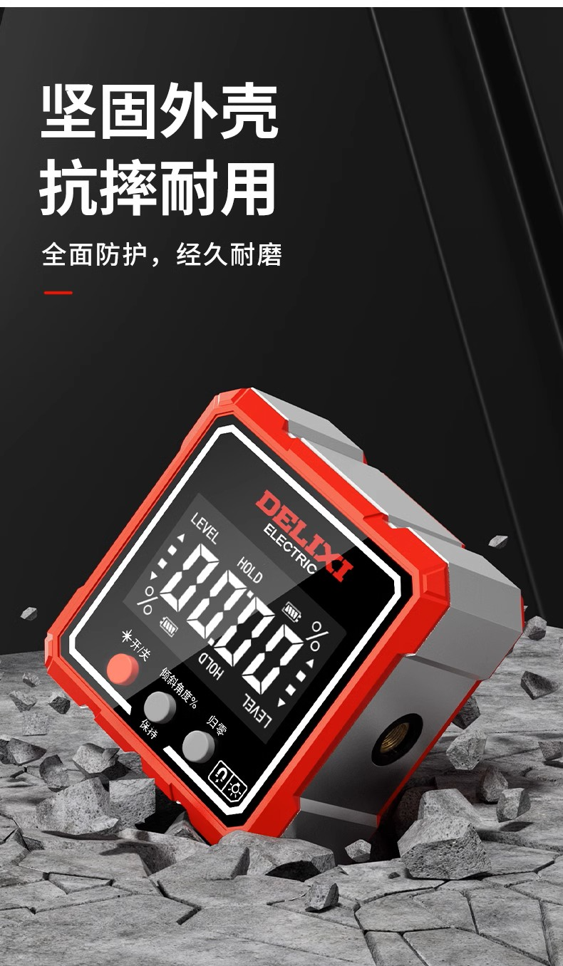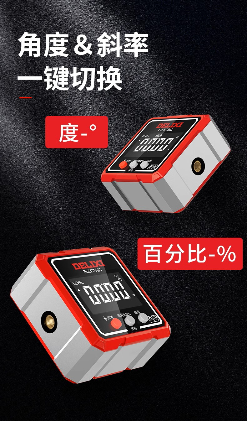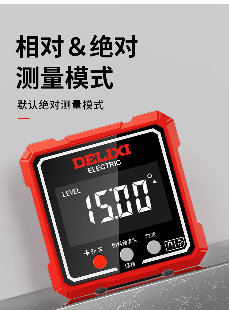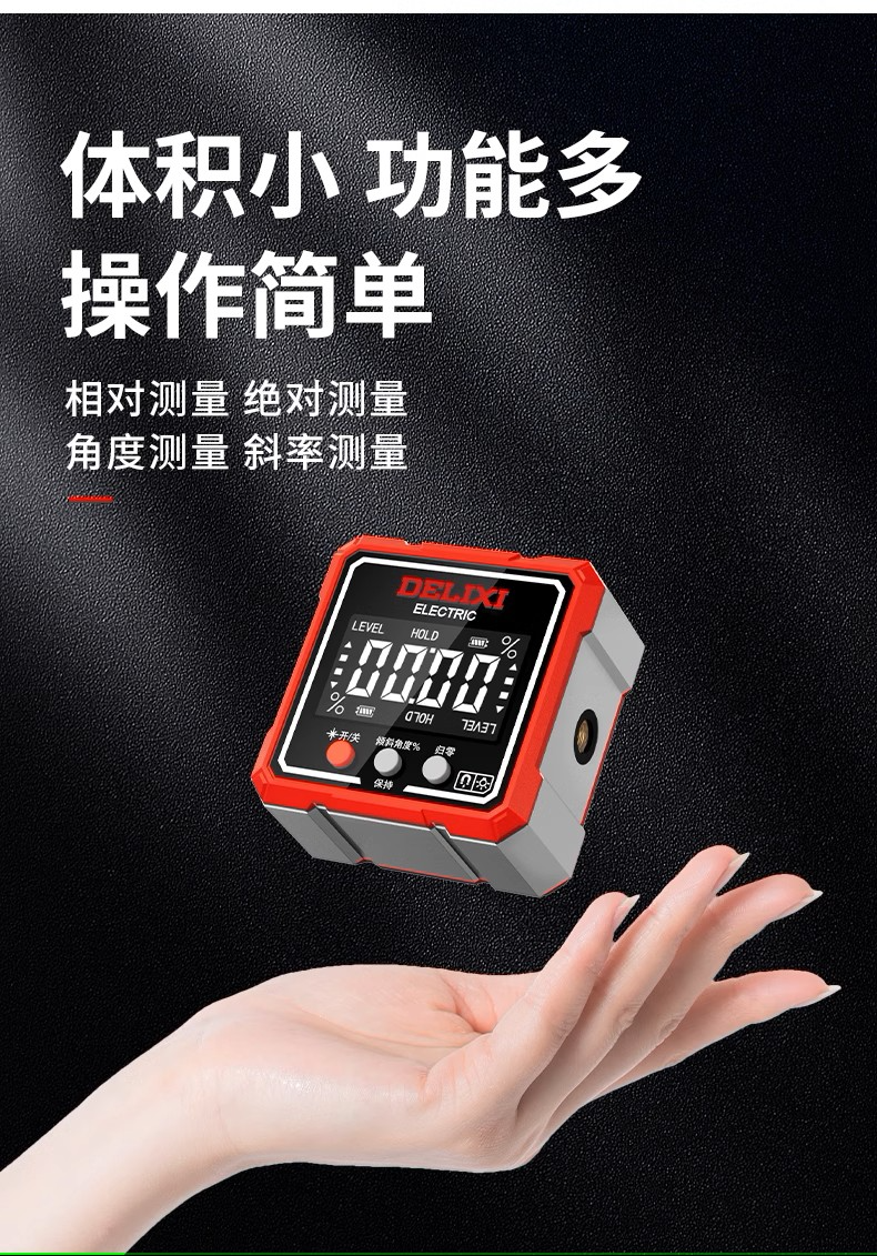 德力西 雷射傾角儀 高精度電子角度測量儀 數顯水平尺 垂直 平面坡度 雙側雷射 鋁和金外框 四面磁吸 鋰電充電款
