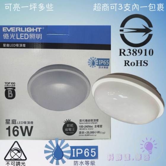 億光16W防水吸頂燈-防水等級IP65!浴室、廁所、儲藏室、陽台可用!星庭LED燈-防蟲燈~防潮燈~認證燈具EV16WW