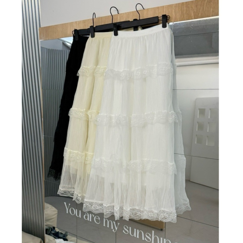 * 層層蛋糕裙襬 × 蕾絲滾邊設計
