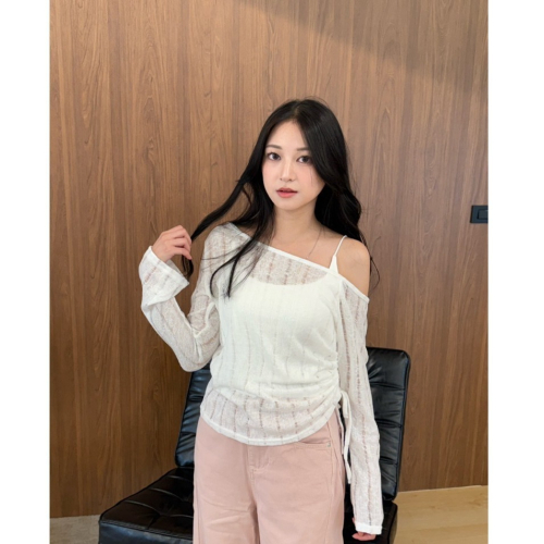 * 一字+斜肩設計,隱約露鎖骨小性感