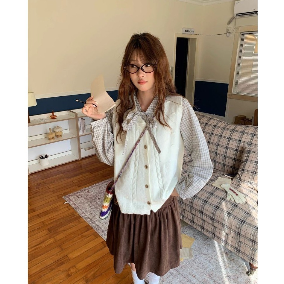 米白色針織背心:衣長59、肩寬38、胸圍108