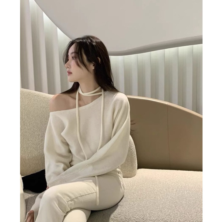* 斜肩露肩設計自然修飾肩線與頸部線條,展現柔美氣質