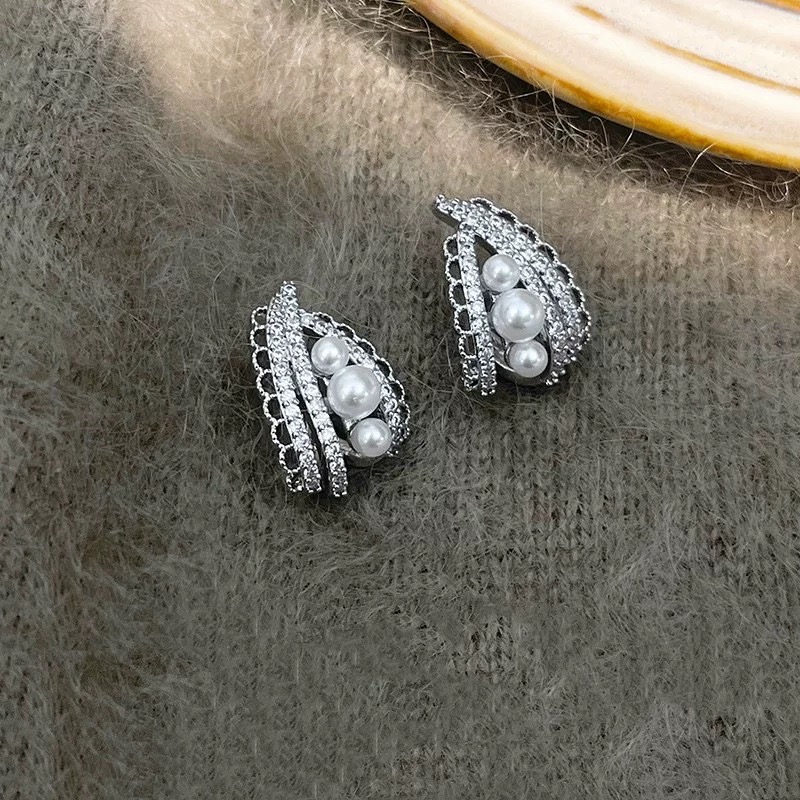 以立體珍珠為中心,搭配如晨光灑落般的鑲鑽弧線,