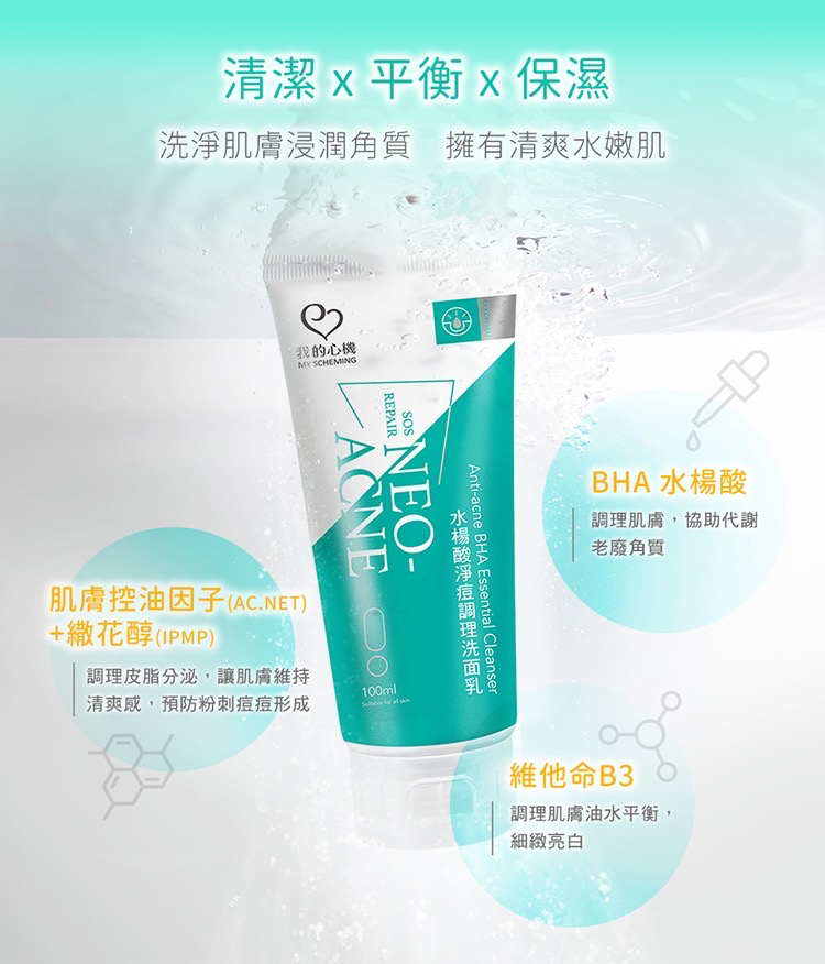📦 我的心機|水楊酸淨痘調理洗面乳(100ml/瓶)