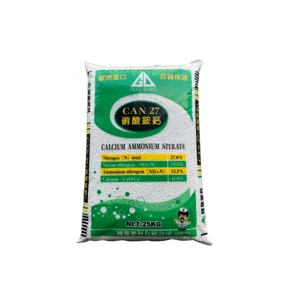 硝酸銨鈣肥料(氮鈣複合肥)提供高達 27% 的氮素,為作物生長提供核心動力;11% 的氧化鈣(CaO)則能強化植物細胞壁,不僅提升品質與硬度,更有助於減少裂果的發生,為作物的健康與優質收成打下堅實基礎。