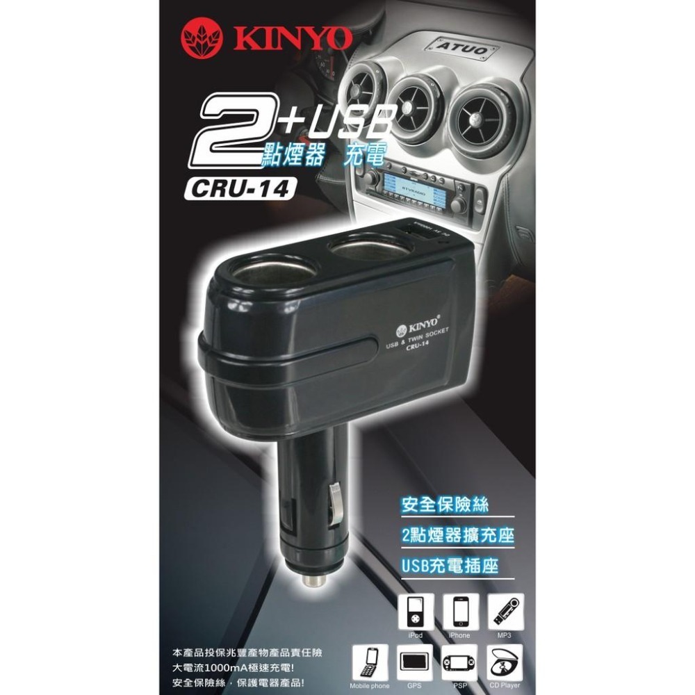 ■這一款『KINYO固定桿車用二孔+USB輸出孔擴充點煙器』只要有了這一個法寶,孤單寂
