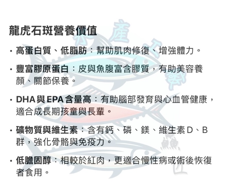 這款「三去龍虎石斑魚 真空包(900克~1100克/條)」是高級海鮮食材之一,肉質細緻、膠質豐富、營養價值極高,深受餐廳與家庭養生料理愛好者喜愛。