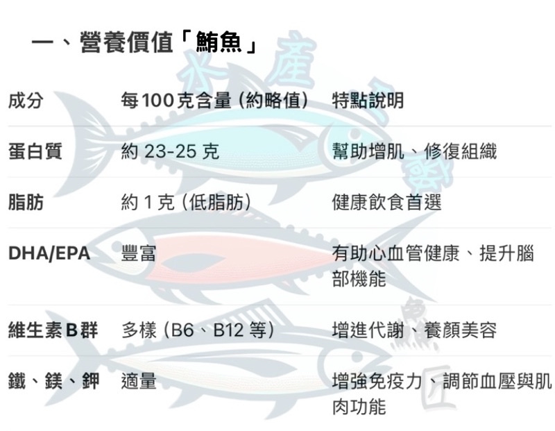 鮪魚是一種高蛋白、低脂肪的海洋魚類,不僅味道鮮美,營養價值也非常高。以下是鮪魚的營養成分與常見烹調方式: