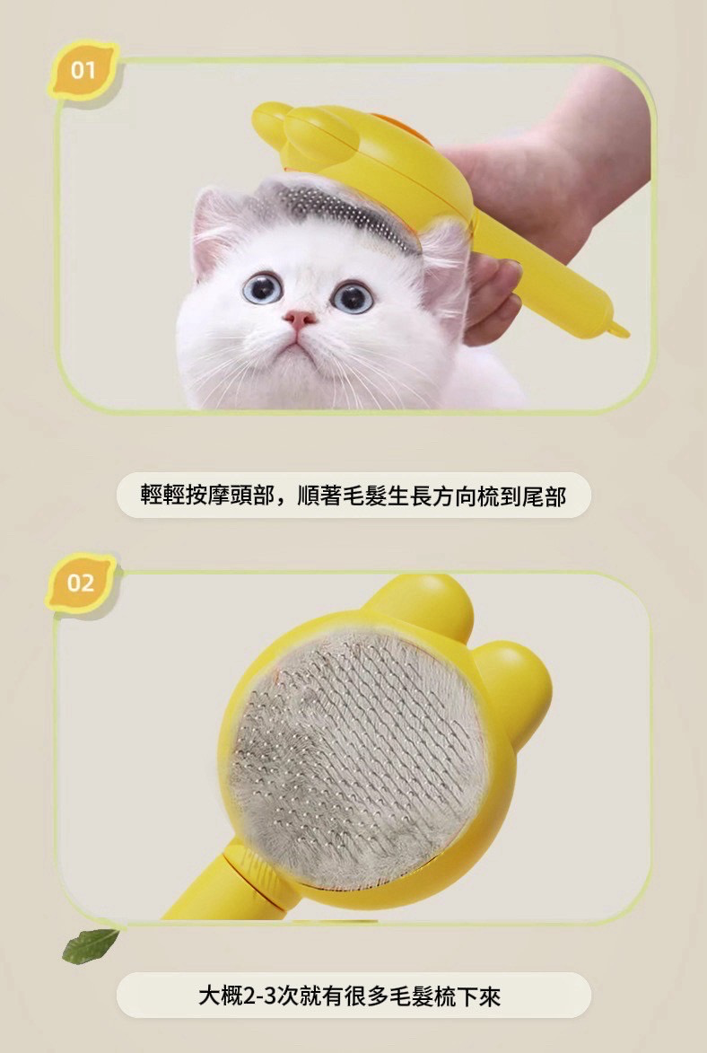✔ 不鏽鋼齒梳,溫和不傷皮膚,輕鬆梳理浮毛與打結