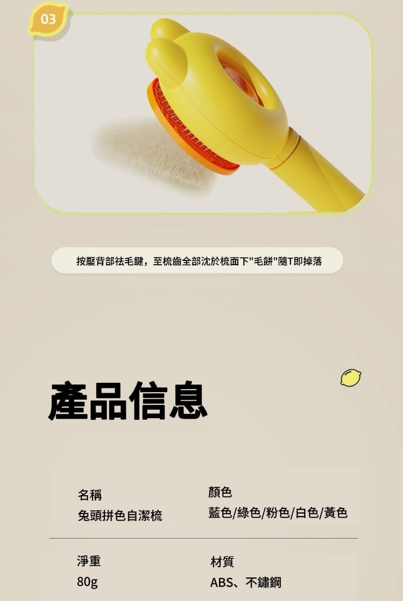 名稱:兔頭拼色自潔梳