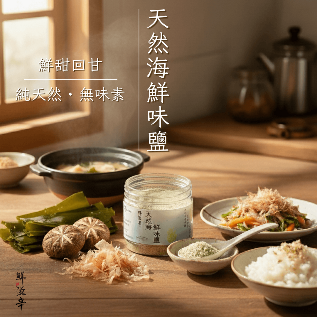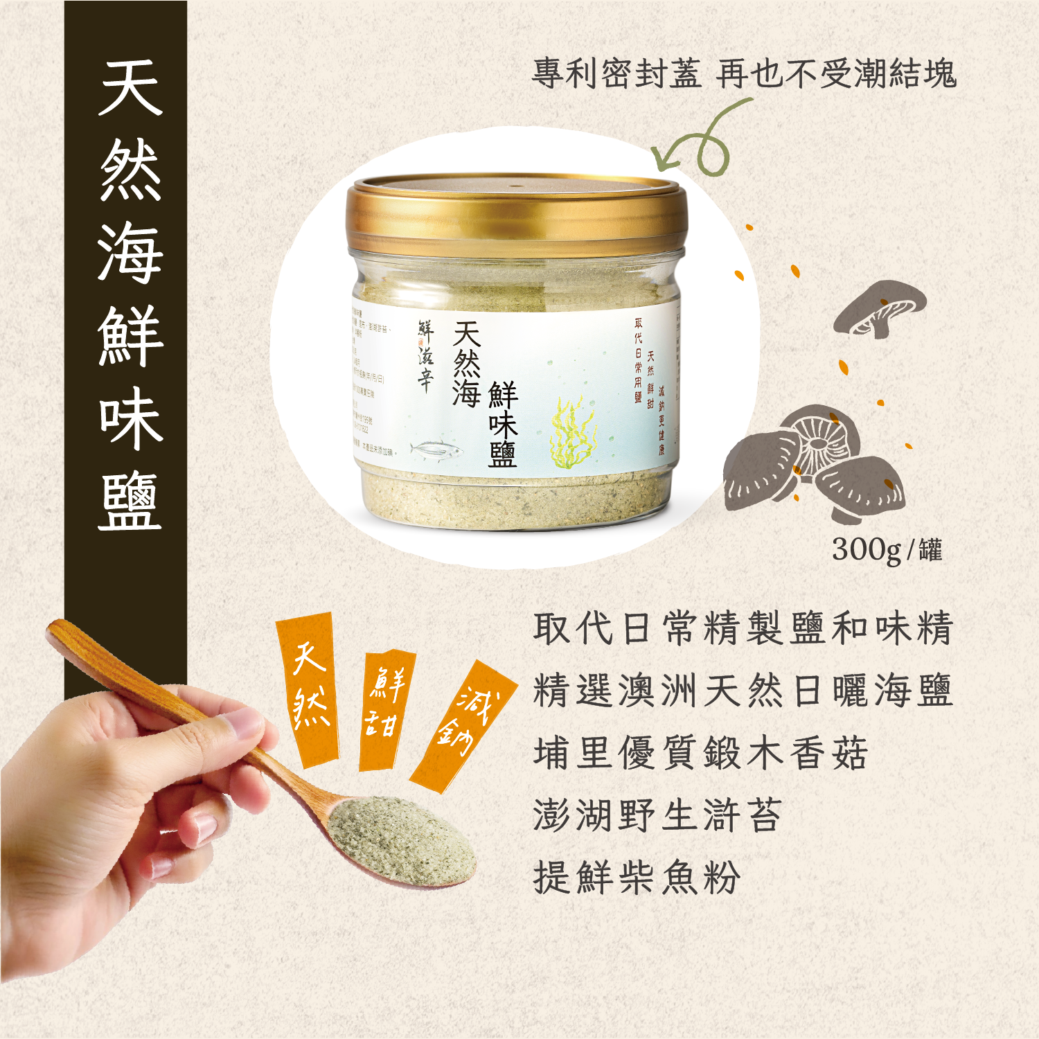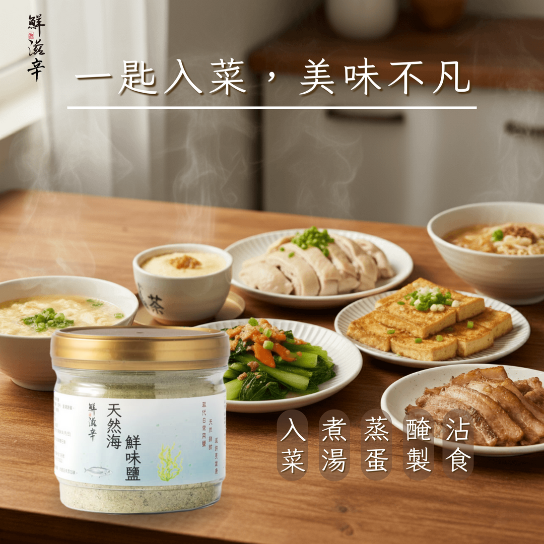 純天然不含味素的健康鮮味鹽,一罐多用、減鈉、無化學添加,為全家守護餐桌上的健康。