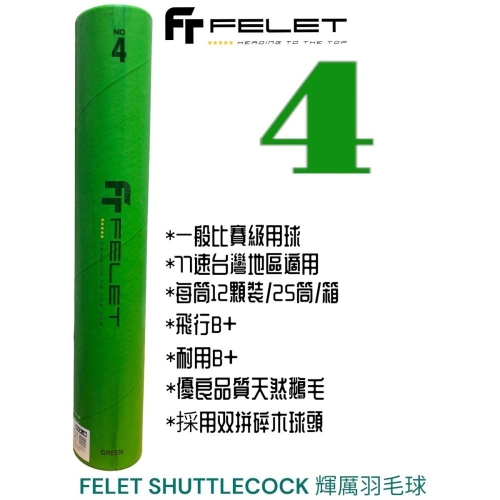 台灣公司貨【FELET NO.4】羽毛球 Green 輝厲4號 羽球 綠色 一般比賽級 正版