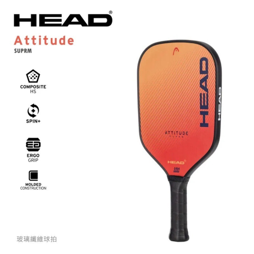 HEAD Attitude SUPRM 專為初學者設計,具備優異的旋轉潛力與輕鬆的擊球力量,同時不失控球感。其耐用的玻璃纖維結構與符合人體工學的握把,帶來持久的舒適感與穩定表現,並以親民價格提供高效能體驗。