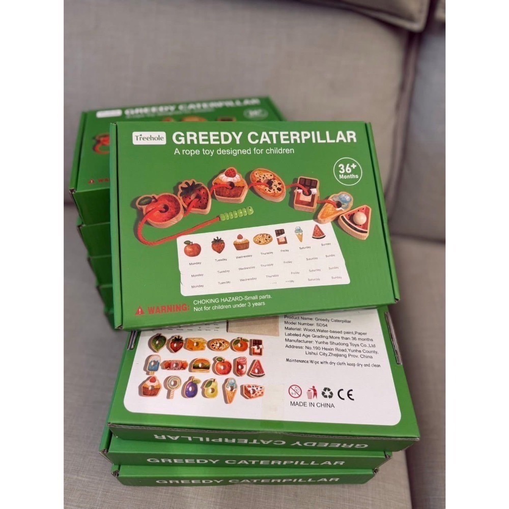 這款「貪吃毛毛蟲穿繩玩具(Greedy Caterpillar)」是一款設計精緻、結合學習與動手操作的益智木製玩具,非常適合36個月以上的孩子使用。