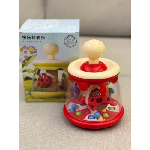 寶寶只要輕輕按下上方的圓球,裡面的瓢蟲與彩球就會旋轉起來,吸引寶寶專注觀察與模仿按壓。