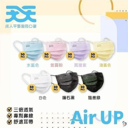 【天天】超透氣 成人平面醫用口罩 (50入/盒)