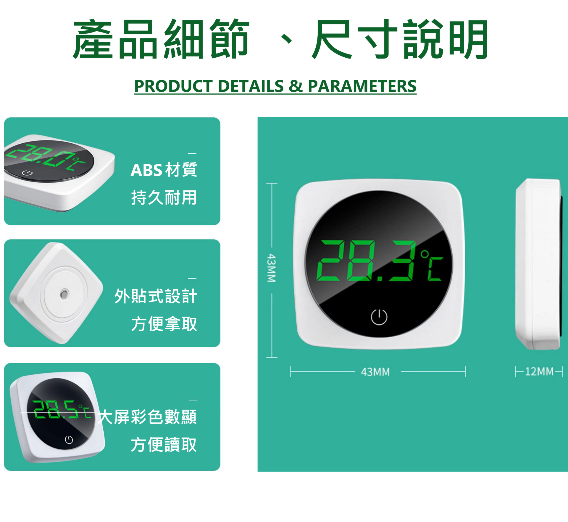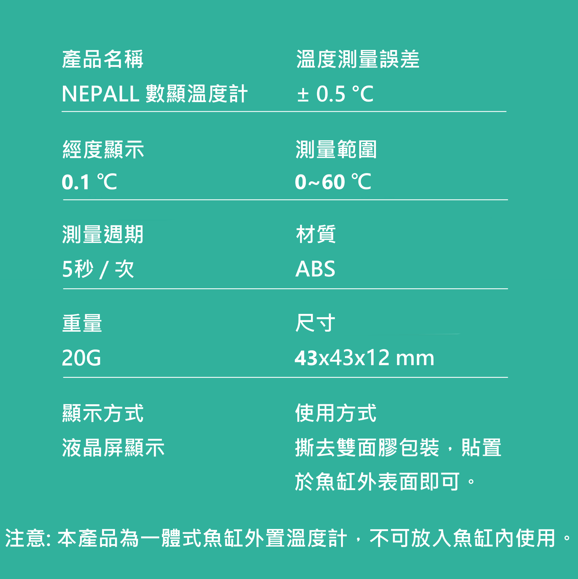 🎏 水族 魚缸 專用 超薄款 外貼式 數顯 溫度計 靈敏精準 0.1度 偵測範圍 0~60度 彩色 數位 顯示 雙顯