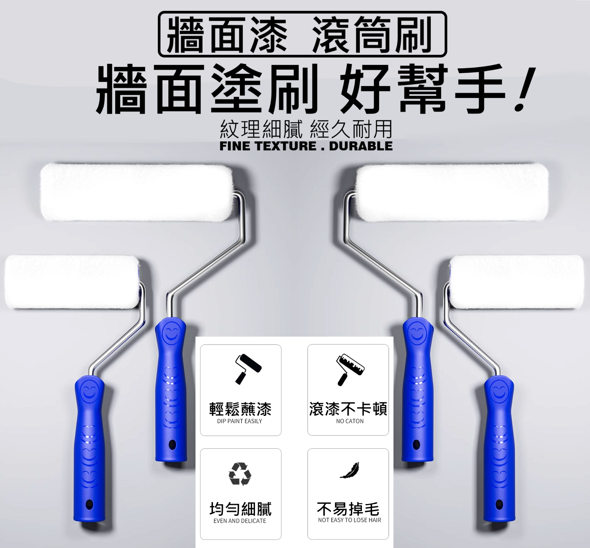 油漆 細絲毛 滾龍刷 油漆盤 不易掉毛 止滑 把手 優質 絲毛 無死角設計 油漆 修繕 裝潢 遮蔽膠帶
