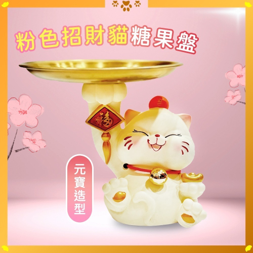 可愛的招財貓舉起金色糖果盤,搭配元寶元素,象徵財源滾滾、福運連連!