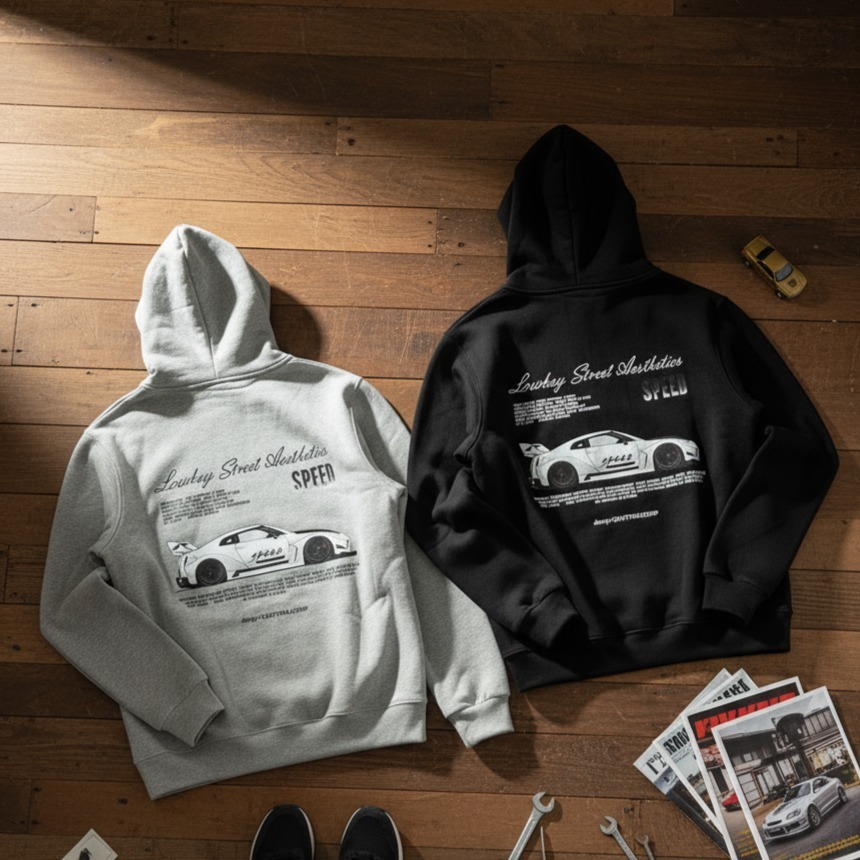 SPEED 賽車帽T 美式街頭 拼色字體 寬鬆落肩 連帽上衣 秋冬新款