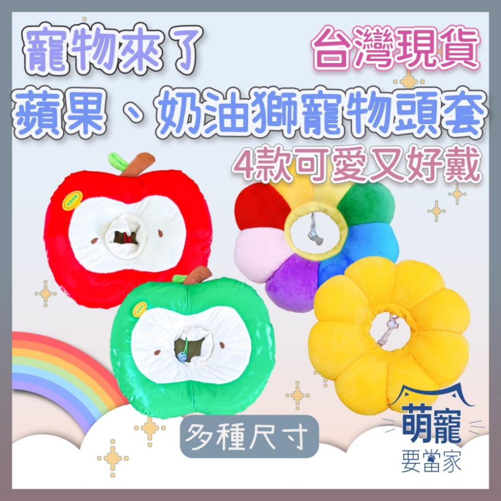🚀隔日到貨🚀萌寵要當家 台灣現貨 寵物來了 造型頭套 寵物頭套 蘋果造型頭套 奶油獅 防舔咬 伊莉莎白
