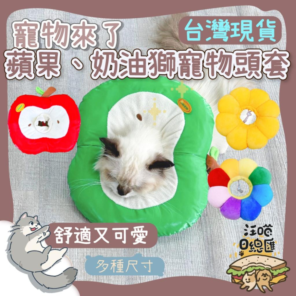 【寵物來了 台灣現貨】造型頭套 寵物頭套 蘋果造型頭套 奶油獅 防舔咬 伊莉莎白 - 汪喵日總匯