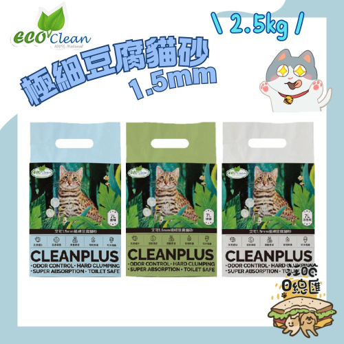 汪喵日總匯【Eco Clean 艾可1.5mm極細豆腐貓砂】極細直徑 迅速結團 秒吸水 7L(2.5kg)