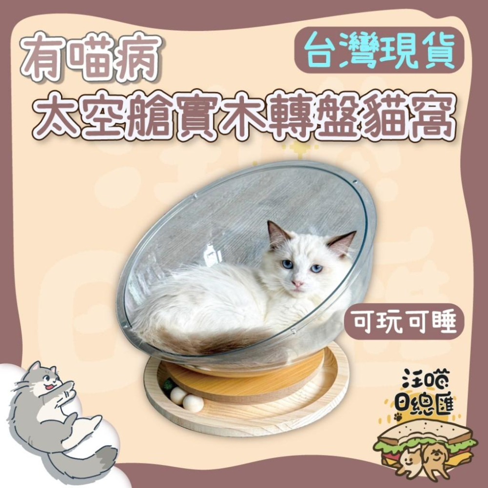 【 有喵病 台灣現貨】太空艙實木轉盤貓窩 睡窩 貓睡窩 - 汪喵日總匯
