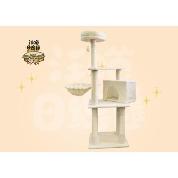 【 有喵病 台灣現貨】 絨布多功能貓跳台 貓爬架 貓抓柱 優惠價 米色 - 汪喵日總匯