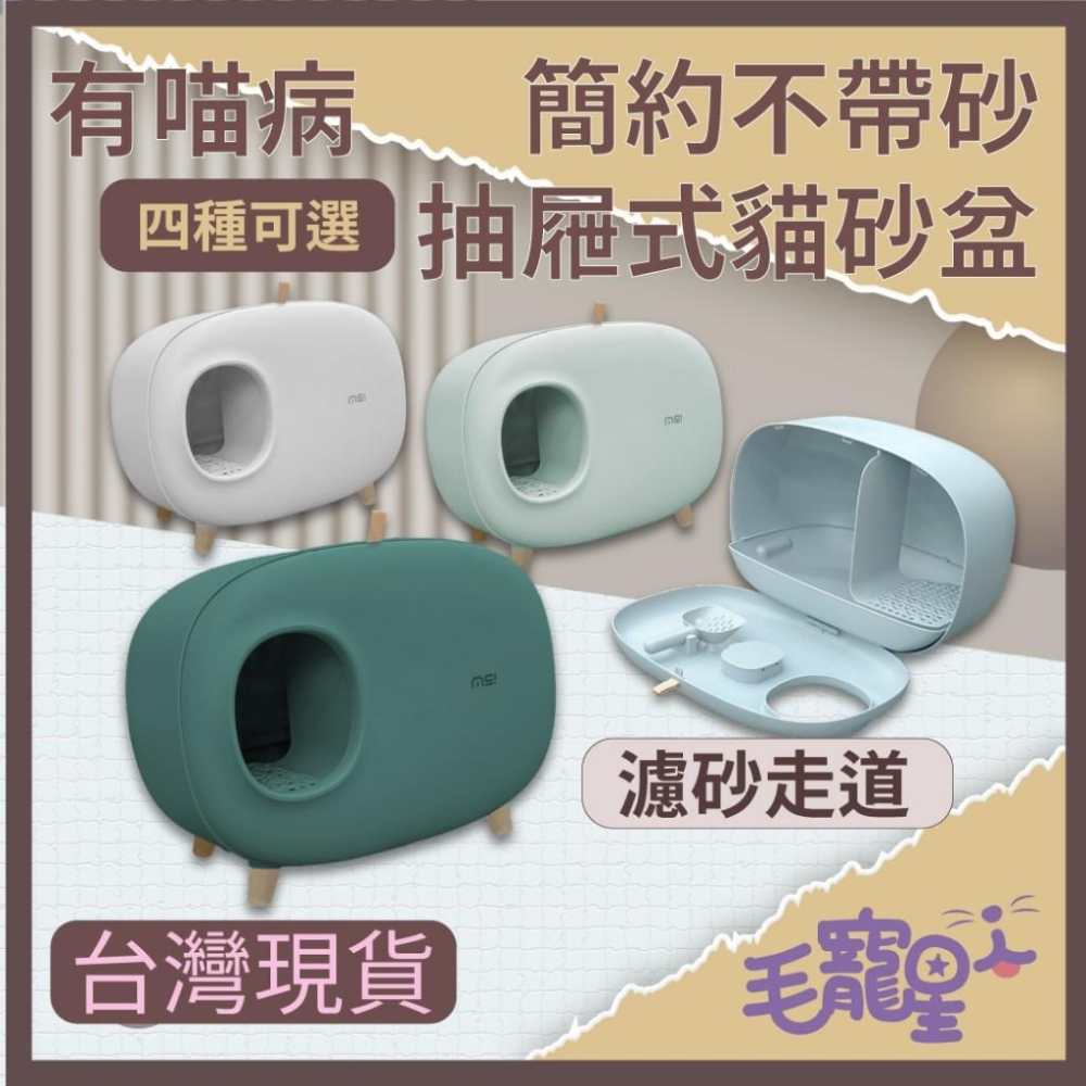毛寵星人【有喵病 台灣現貨】 簡約不帶砂抽屜式貓砂盆 貓砂盆 貓砂鏟 大空間 貓廁所