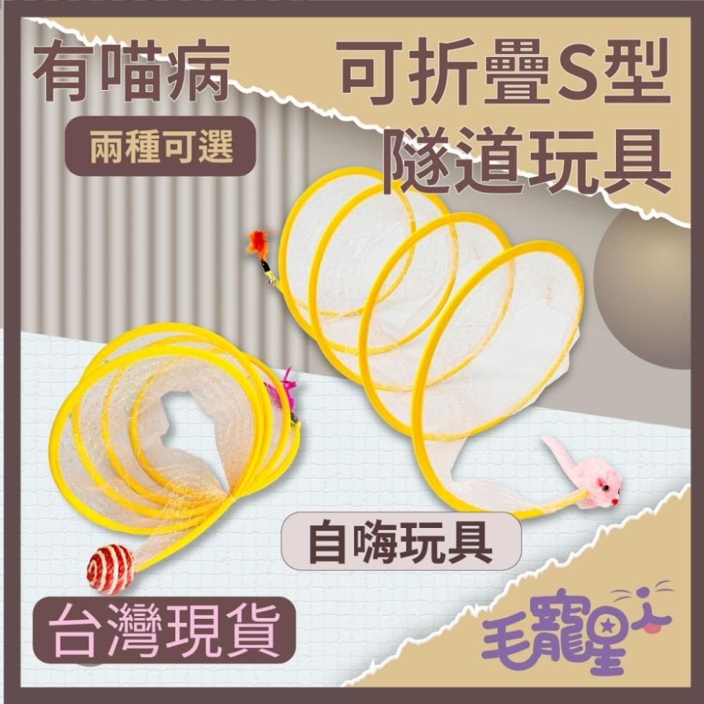 毛寵星人【有喵病 台灣現貨】可折疊S型隧道玩具 貓玩具 貓咪自嗨玩具 貓老鼠玩具 貓隧道