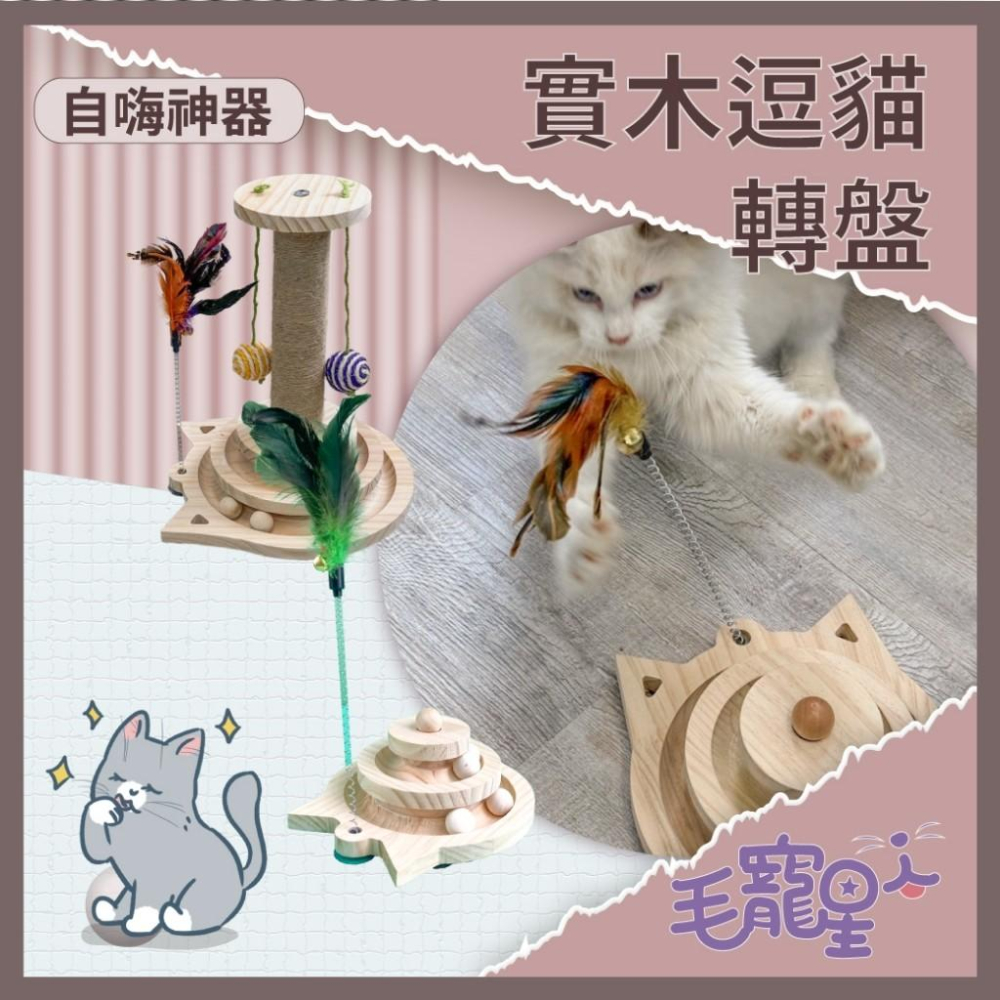 毛寵星人【有喵病 台灣現貨】實木逗貓轉盤 貓抓柱 劍麻球 貓玩具