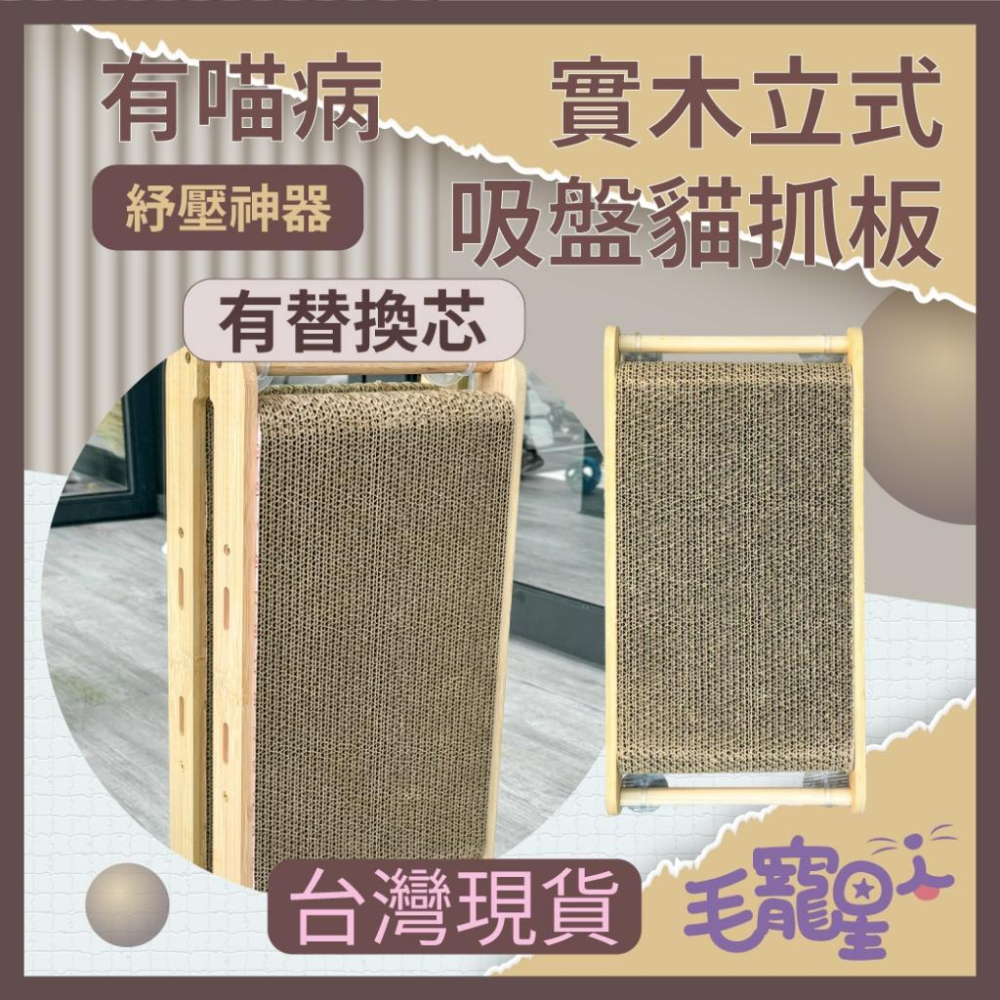 毛寵星人【有喵病 台灣現貨】實木立式吸盤貓抓板 貓抓板替換芯 貓磨爪 貓抓板 貓玩具