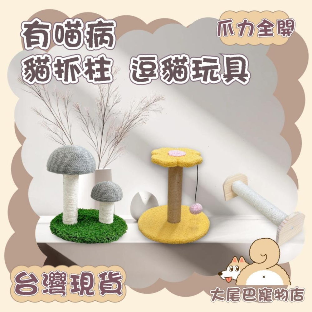 【大尾巴】台灣現貨 有喵病 小花貓抓柱 蘑菇草坪抓柱 劍麻貓抓柱 逗貓玩具 貓咪玩具 寵物玩具