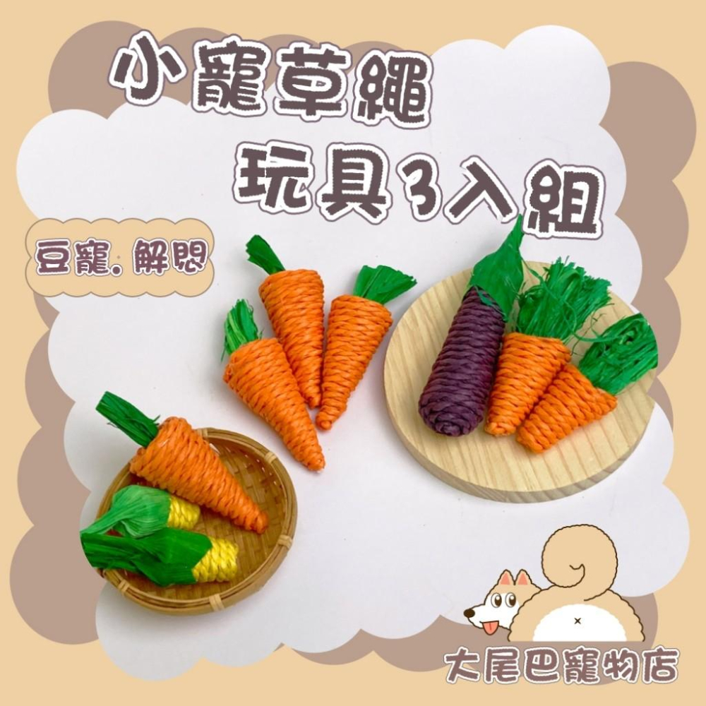 【大尾巴】寵物來了 台灣現貨 小寵草繩玩具3入組 倉鼠玩具 磨牙玩具 小動物 熊鼠 紙捲
