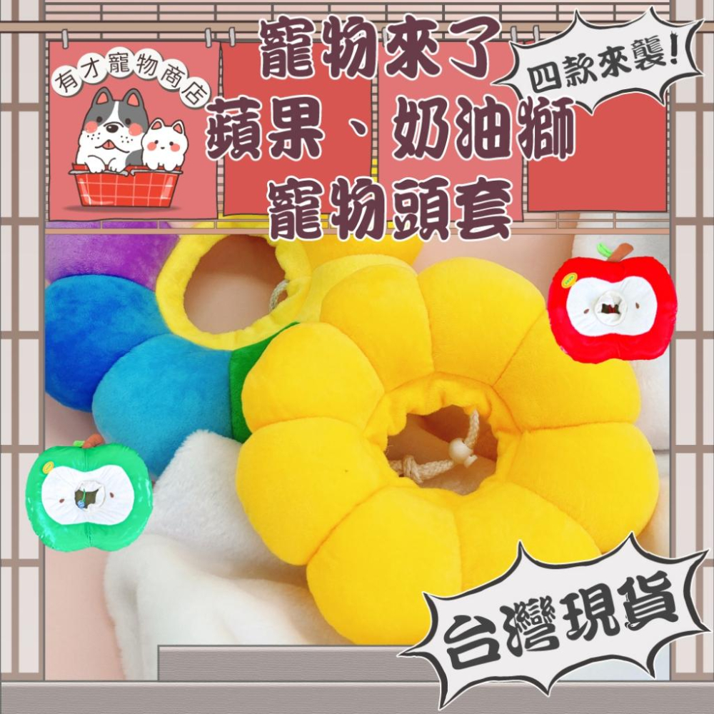 🍭有才寵物商店 🔥台灣現貨 寵物來了 造型頭套 寵物頭套 蘋果造型頭套 奶油獅 防舔咬 伊莉莎白