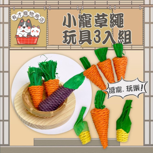 寵物來了 台灣現貨 小寵草繩玩具3入組 倉鼠玩具 磨牙玩具 小動物 熊鼠 紙捲