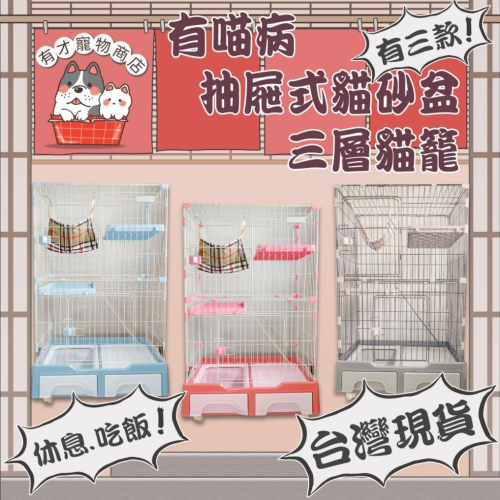 有喵病 台灣現貨 抽屜式貓砂盆三層貓籠 四層貓籠 抽屜式貓砂盆貓籠 寵物籠 貓咪籠