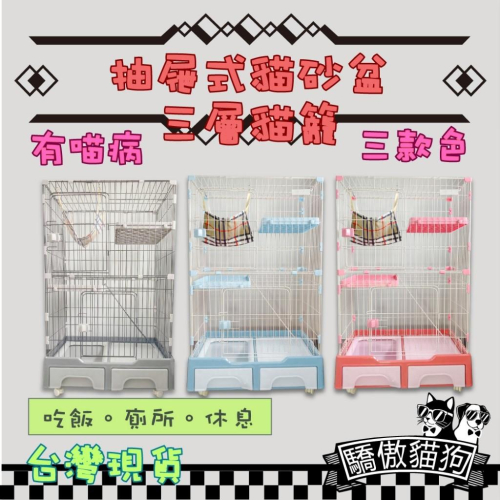 驕傲貓狗 有喵病 台灣現貨 抽屜式貓砂盆三層貓籠 四層貓籠 抽屜式貓砂盆貓籠 寵物籠 貓咪籠