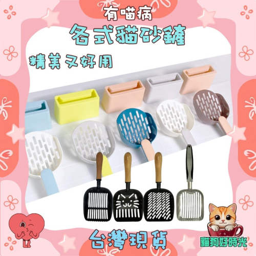 台灣現貨✅貓狗好時光 有喵病 雙色拼接貓砂鏟套組 實木柄塗層貓砂鏟 直紋快速漏沙金屬貓砂鏟