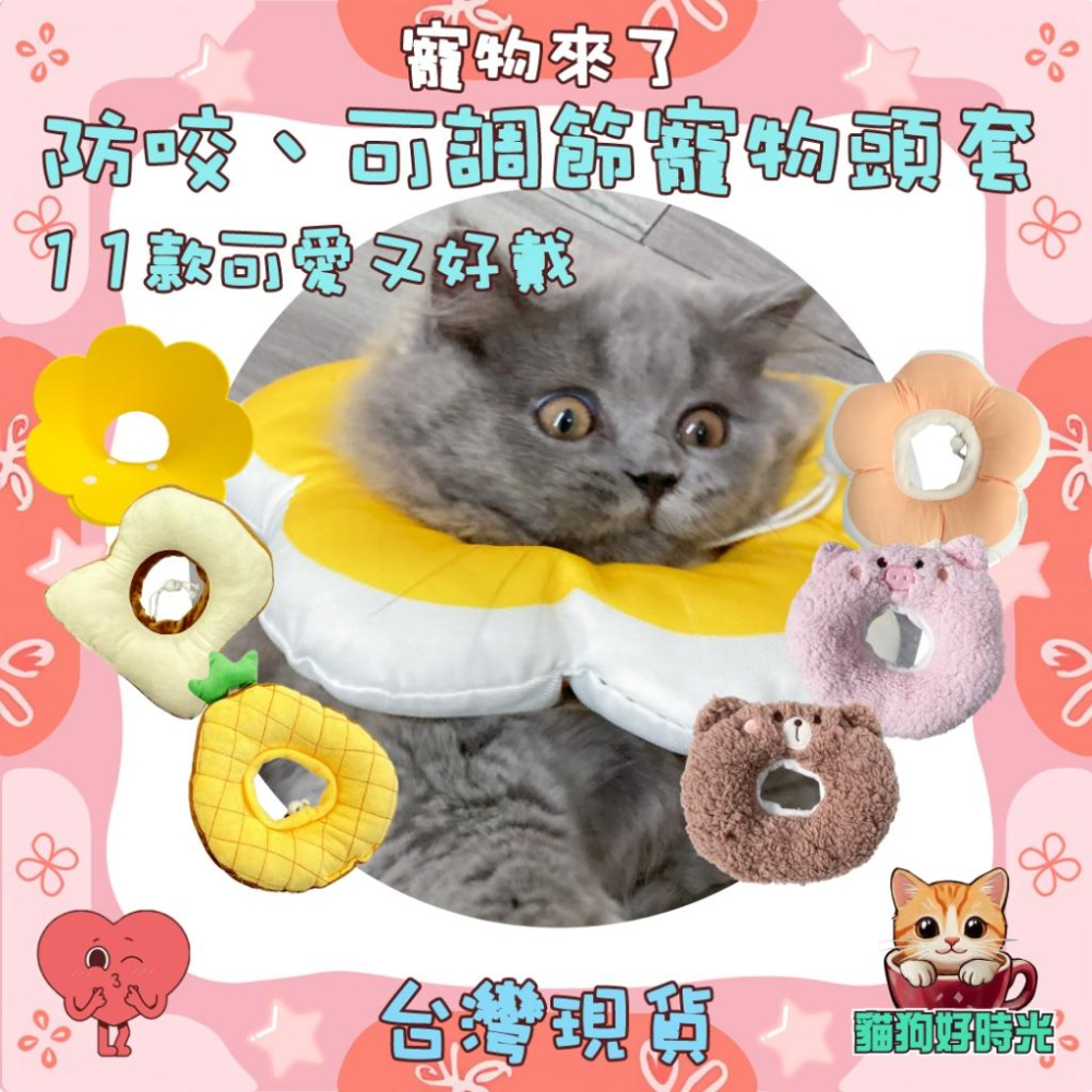 台灣現貨✅貓狗好時光 造型頭套 寵物頭套 EVA防舔咬 趣味 毛絨可調節 花朵 伊莉莎白