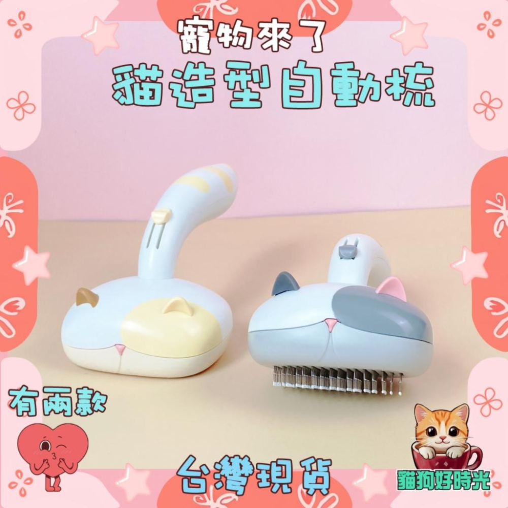 ✅貓狗好時光 寵物來了 貓造型自動梳 貓毛 梳毛器 按壓式梳毛 寵物梳子