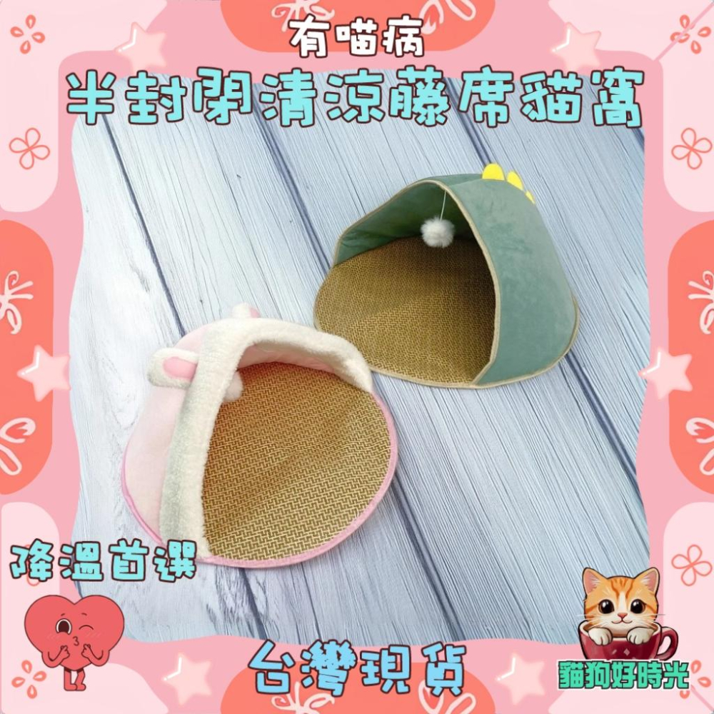 台灣現貨✅貓狗好時光 半封閉清涼藤席貓窩 兔子恐龍 夏季 涼墊 寵物