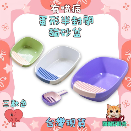 ✅貓狗好時光 有喵病 蛋形半封閉貓砂盆 貓砂盆 抽屜式 大空間 落砂踏板貓廁所 貓便盆