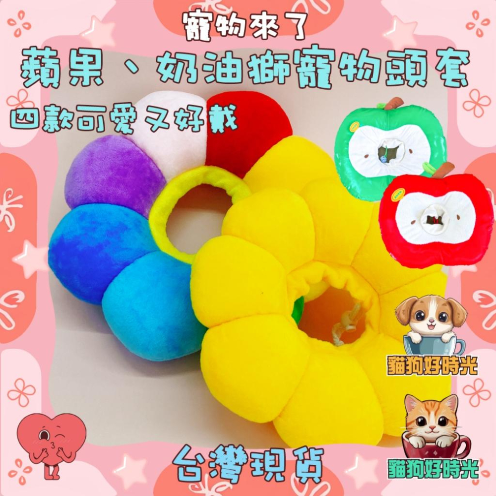 台灣現貨✅貓狗好時光 寵物來了 造型頭套 寵物頭套 蘋果造型頭套 奶油獅 防舔咬 伊莉莎白