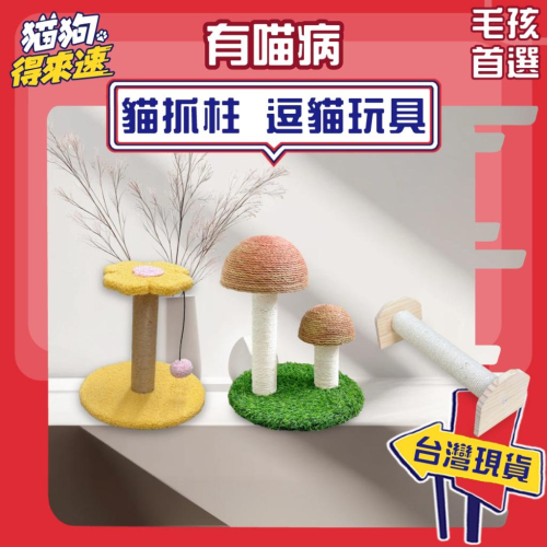 台灣現貨貓狗得來速 有喵病 小花貓抓柱 蘑菇草坪抓柱 劍麻貓抓柱 逗貓玩具 貓咪玩具 寵物玩具