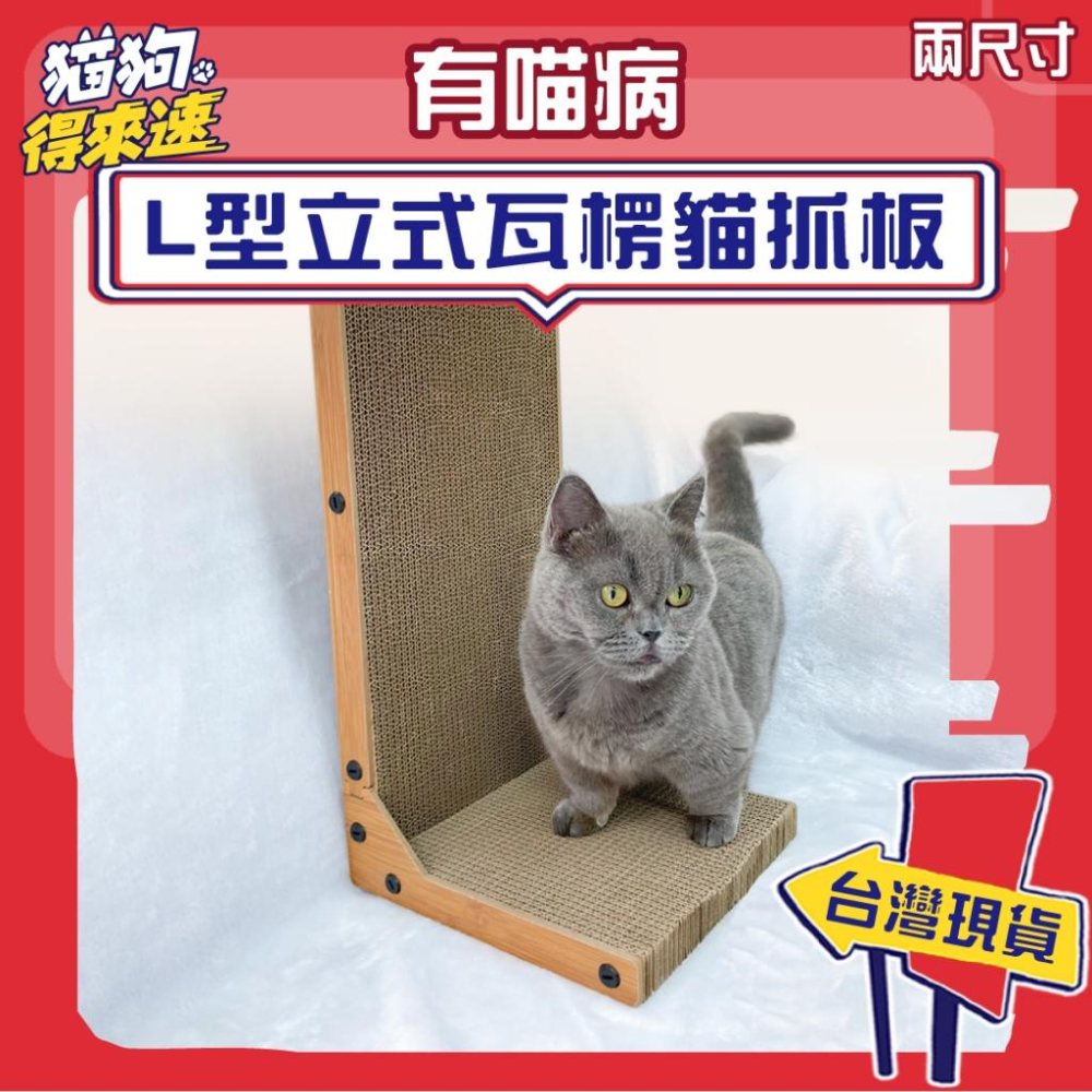 台灣現貨貓狗得來速 有喵病 L型立式瓦楞貓抓板 貓玩具 貓抓窩 瓦楞紙抓板 貓磨爪